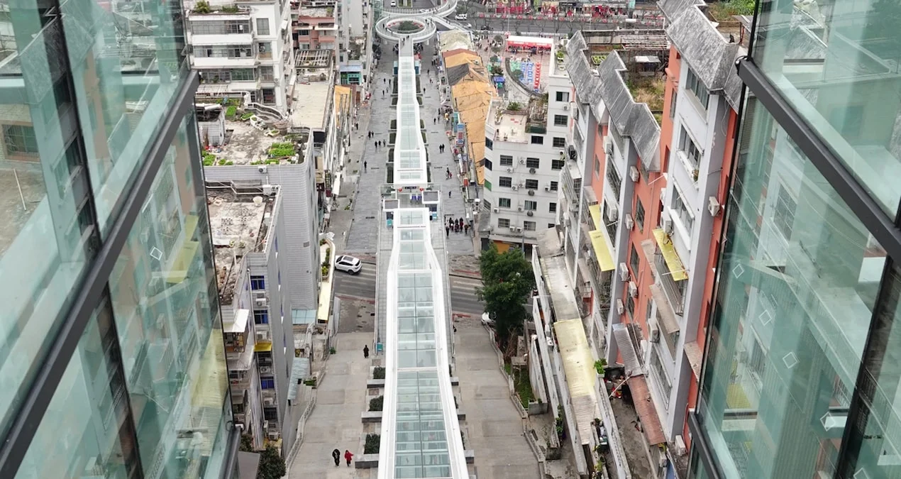 Çinin nəhəng şəhərlərindən biri olan Çonqçinqdə (Chongqing) ictimai nəqliyyatda inqilab edəcək yeni bir layihə istifadəyə verilib. “İlahə” adlandırılan bu dağ eskalator sistemi, 244 metr hündürlük fərqini qət edərək, təxminən 80 mərtəbəli bir binanın hündürlüyünə bərabərdir.